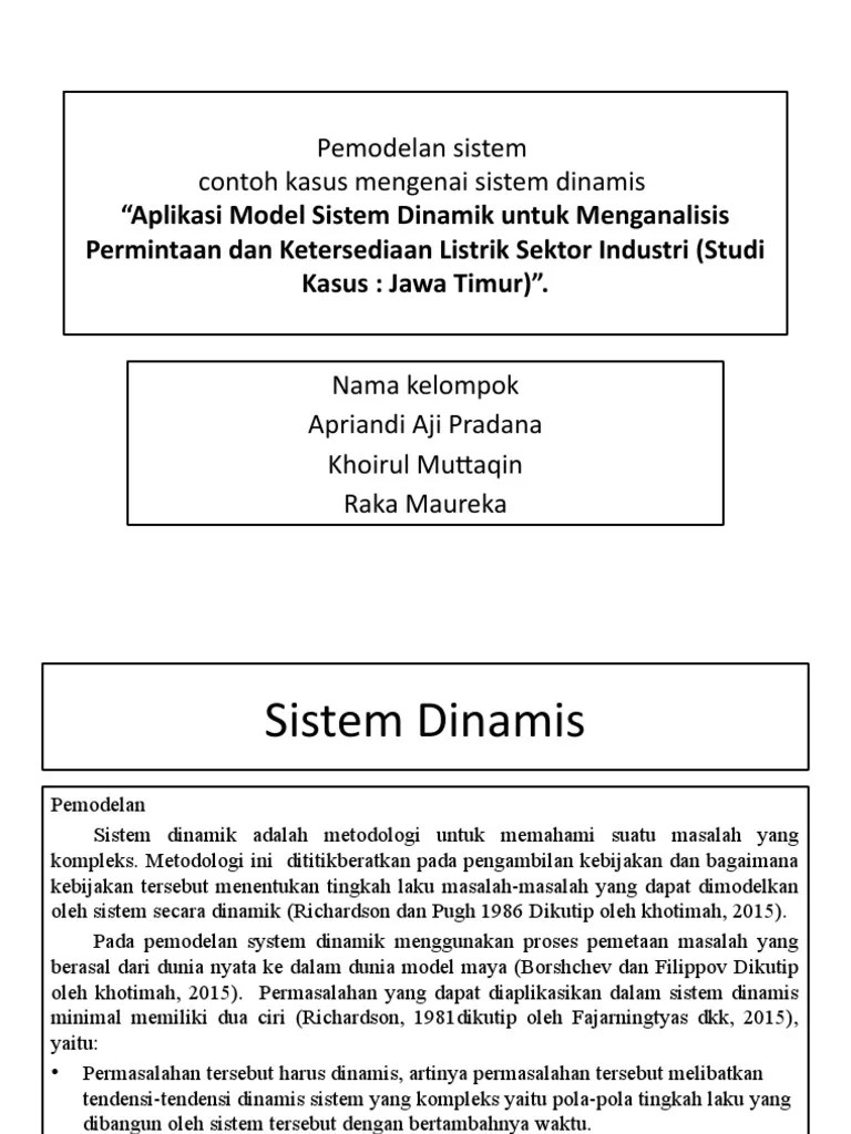 Selamat datang, kali ini saya akan berbagi ilmu mengenai contoh kasus pada materi pemodelan sistem dan simulasi. Dengan mengambil contoh kasus antrian kendaraan yang terjadi di. Meita irmawanti, 4150407028 (2011) pemodelan . Full text (10.42mb) · cover ( . Dengan pemodelan sistem dinamik guna meningkatkan profit (studi kasus: .